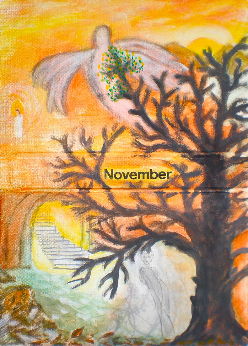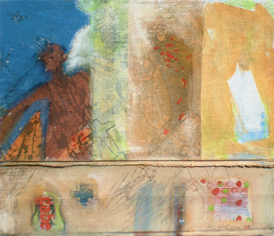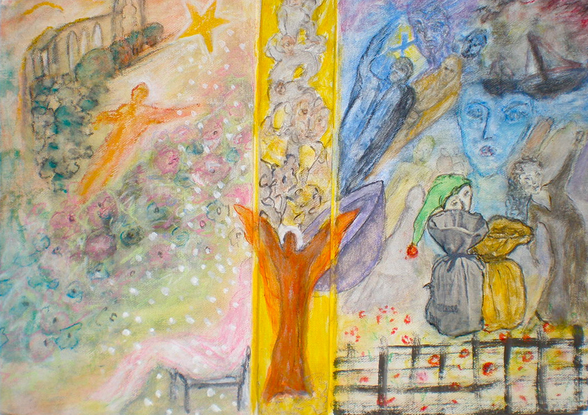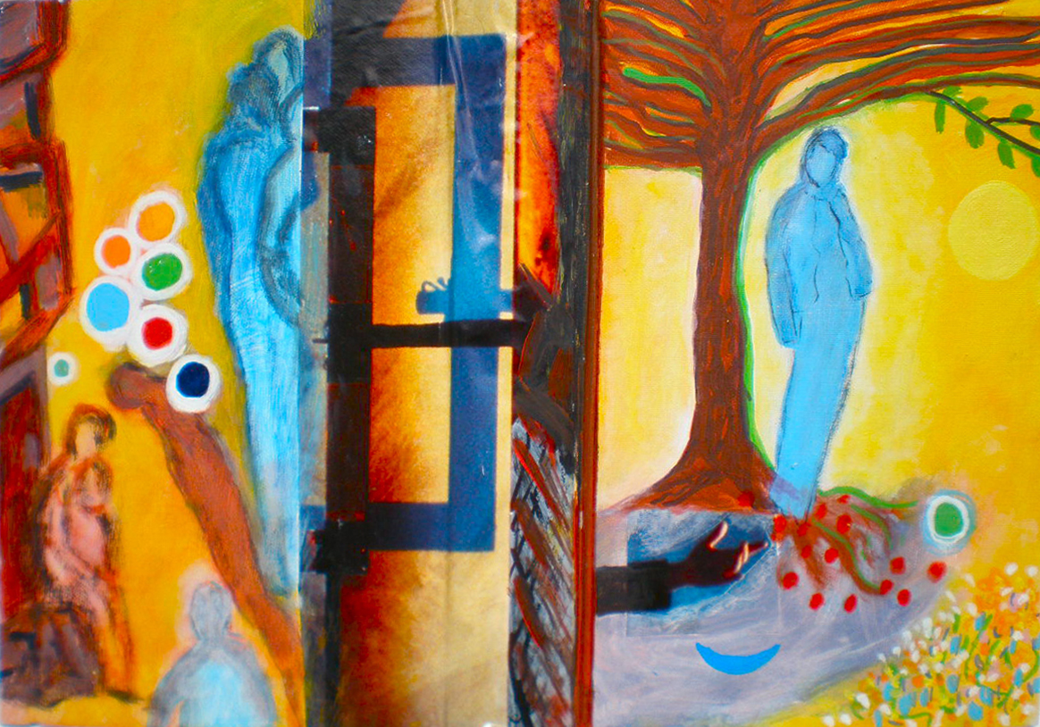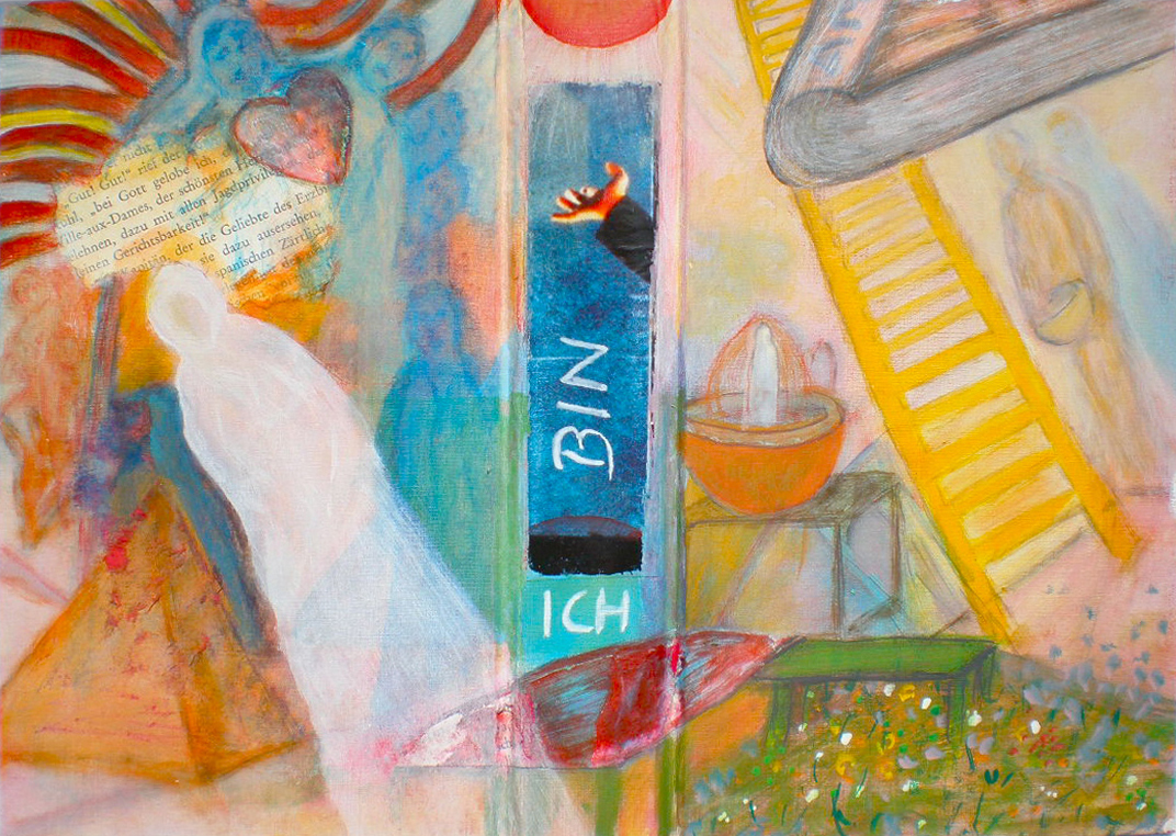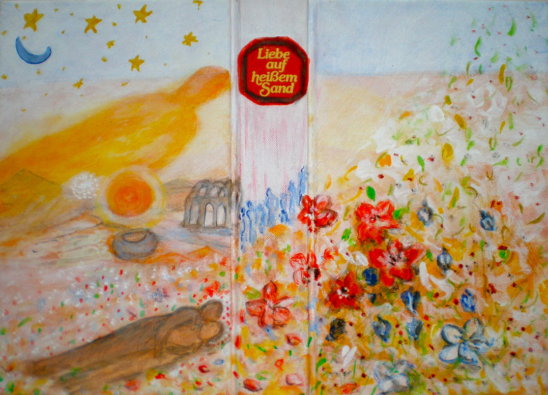 Beim Entsorgen alter Bücher kam mir die Idee, die schönen Buchhüllen aus Leinen zu übermalen. Die Titel waren oft die Inspiration zur Gestaltung dieser Buchhüllen.